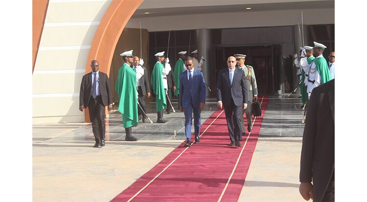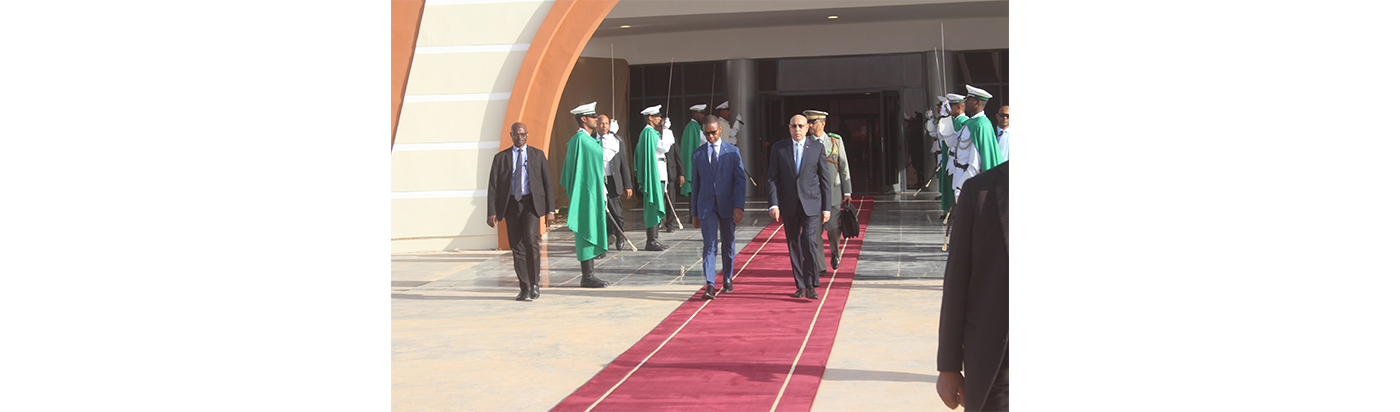 Son Excellence le Président de la République a été accueilli à l’aéroport international de Nouakchott – Oumtounsy par le Premier ministre M. Mohamed Ould Bilal Messaoud, le ministre secrétaire général de la Présidence de la République, les deux ministres conseillers à la Présidence de la République, plusieurs membres du Gouvernement, le Chef d’état-major particulier du Président de la République, le wali de Nouakchott Ouest et la présidente de la Région de Nouakchott.