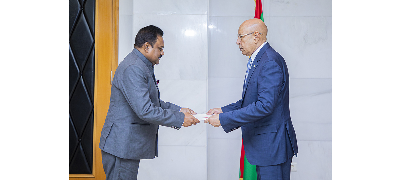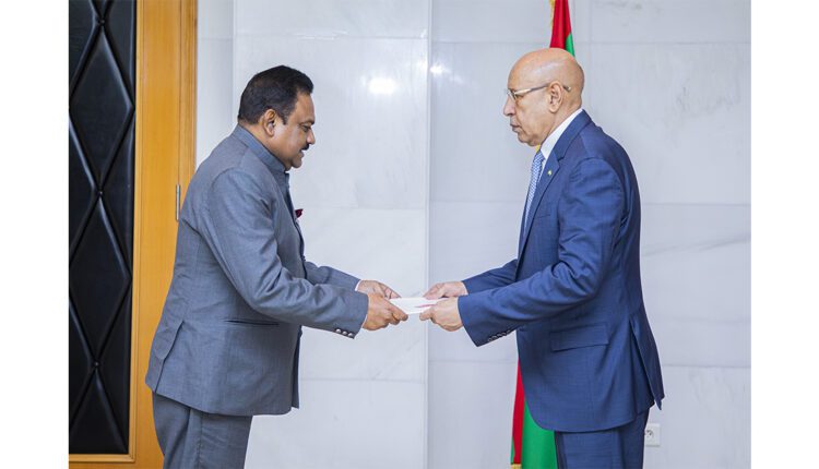 Son Excellence le Président de la République, M. Mohamed Ould Cheikh El-Ghazouani, a reçu, mardi, au Palais présidentiel à Nouakchott, les lettres de créance de S.E. Naresh Kumar, en qualité d’ambassadeur extraordinaire et plénipotentiaire de la République de l’Inde auprès de la République Islamique de Mauritanie.