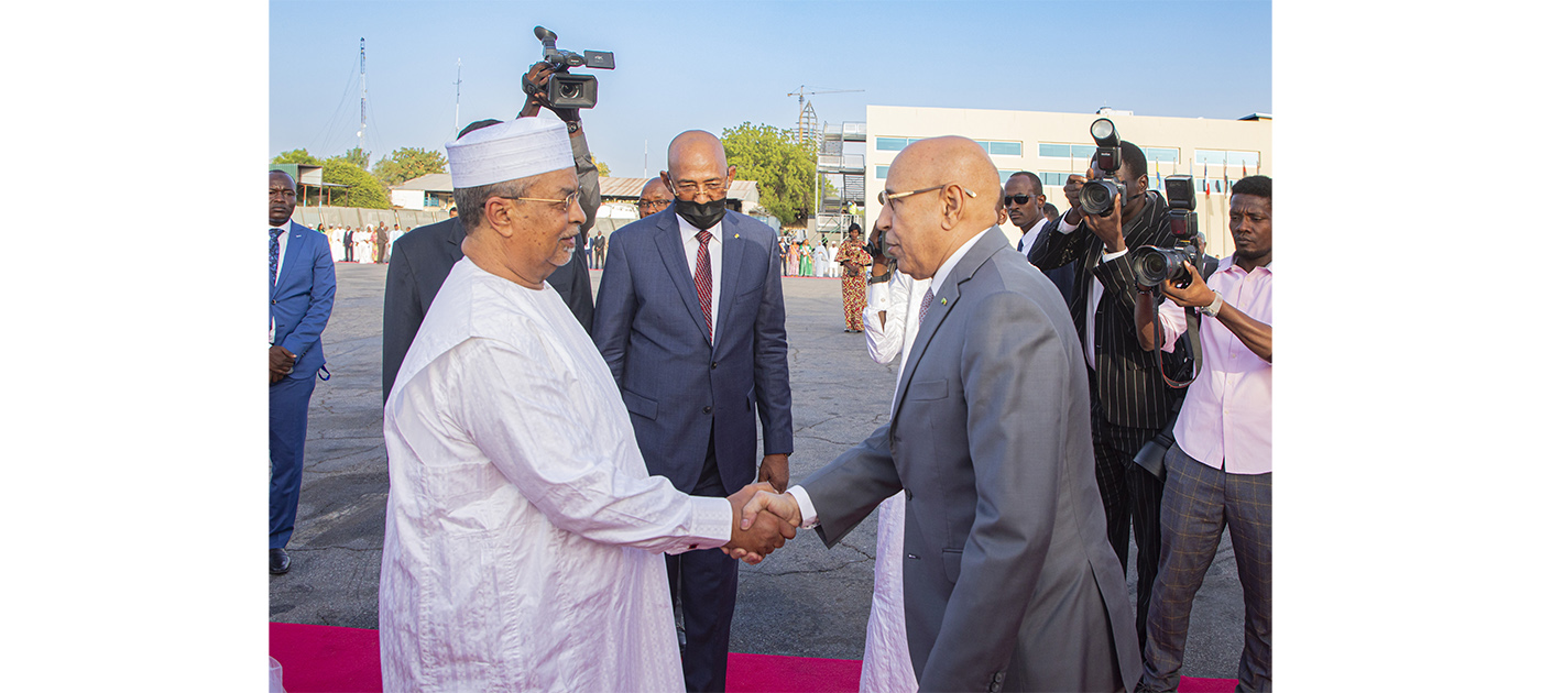 Plusieurs formations militaires tchadiennes ont présenté un salut d’honneur à Son Excellence le Président de la République à l’aéroport de N’Djamena et les hymnes nationaux mauritanien et tchadien ont été joués pour célébrer son arrivée.