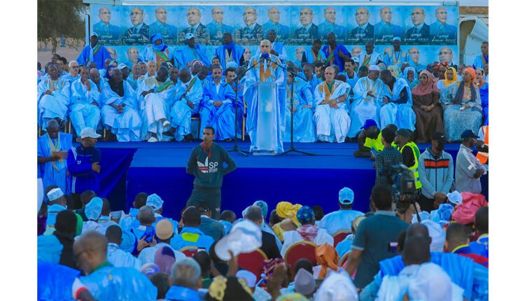Lors d’un meeting électoral organisé mercredi soir dans la ville de Kaédi par la direction de sa campagne, le candidat à l’élection présidentielle de 2024, M. Mohamed Ould Cheikh El-Ghazouani, a passé en revue les réalisations qui ont eu lieu en Mauritanie au cours des cinq dernières années, et les grandes lignes du programme qu’il mettra en œuvre lors de son deuxième mandat, s’il remporte les prochaines élections présidentielles.