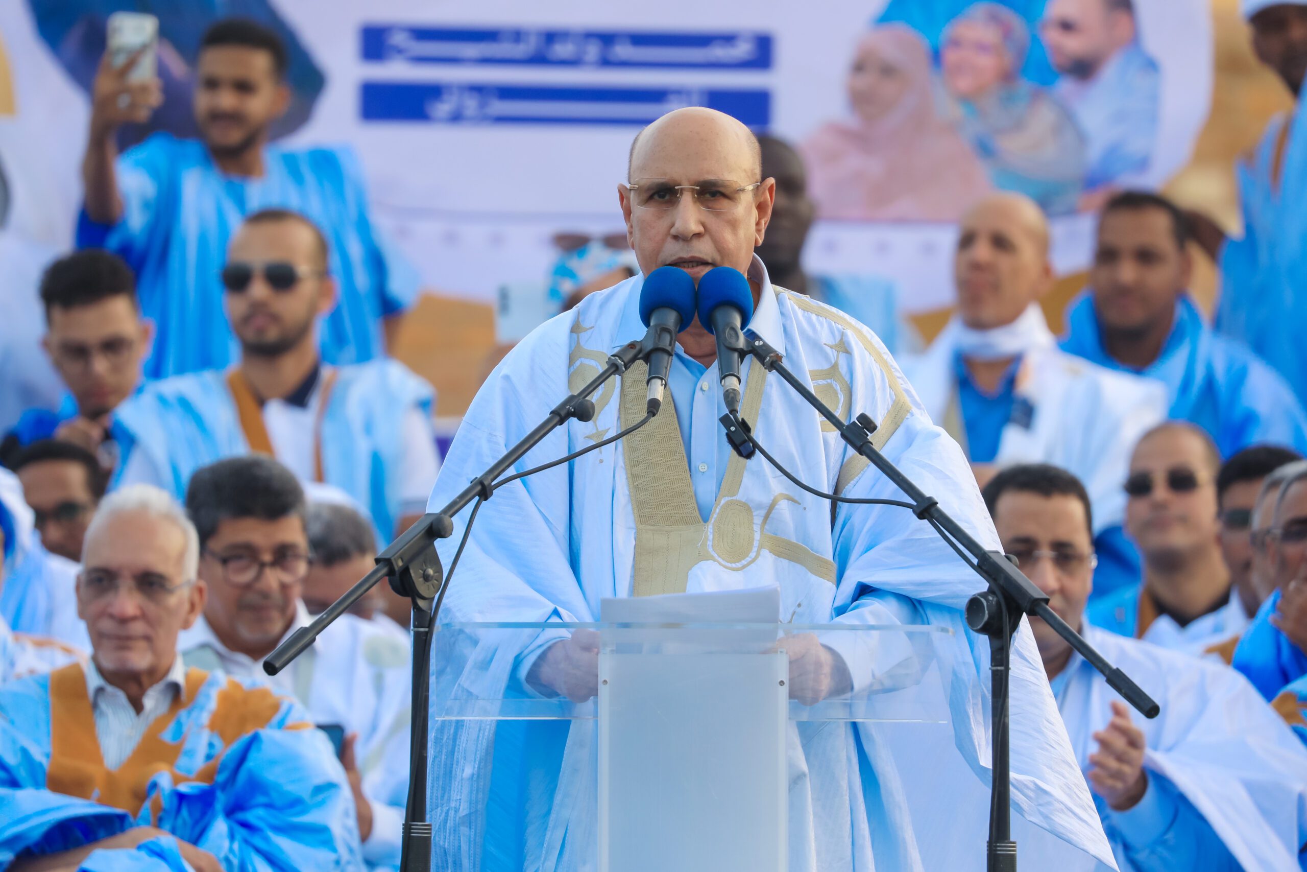Le candidat Mohamed Ould Cheikh El Ghazouani passe en revue dans un meeting à Atar les grandes lignes de son programme électoral