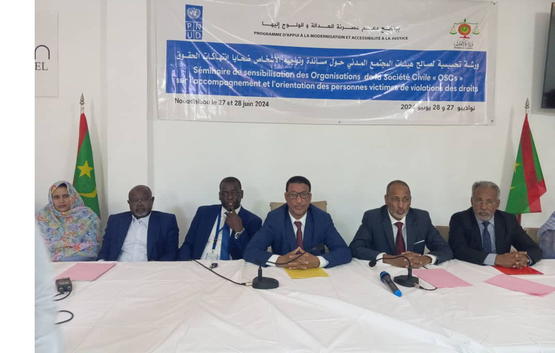 M. Hamoud Ould Sid Ahmed, coordinateur du programme de modernisation et d’accès à la justice relevant du PNUD, a déclaré que les participants à cet atelier pourront améliorer leurs connaissances des droits de l’homme et développer des compétences pour soutenir et orienter les victimes de violations des droits de l’homme, apprendre à identifier les besoins des victimes, leur fournir des services appropriés, et renforcer la coopération entre les organisations de la société civile et les autres acteurs impliqués dans la protection des droits de l’homme.