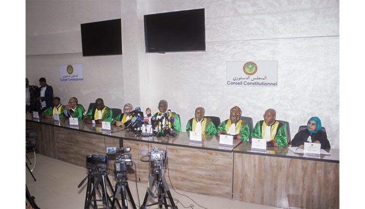 Le conseil constitutionnel a annoncé, mercredi, par délibération Délibération N° 2024/004, les résultats définitifs de l’Élection présidentielle du 03 Juillet 2024 proclamant l’élection du candidat Mohamed Ould Cheikh El-Ghazouani à la Présidence de la République Islamique de Mauritanie. Voici, dans son intégralité, le texte de cette délibération :