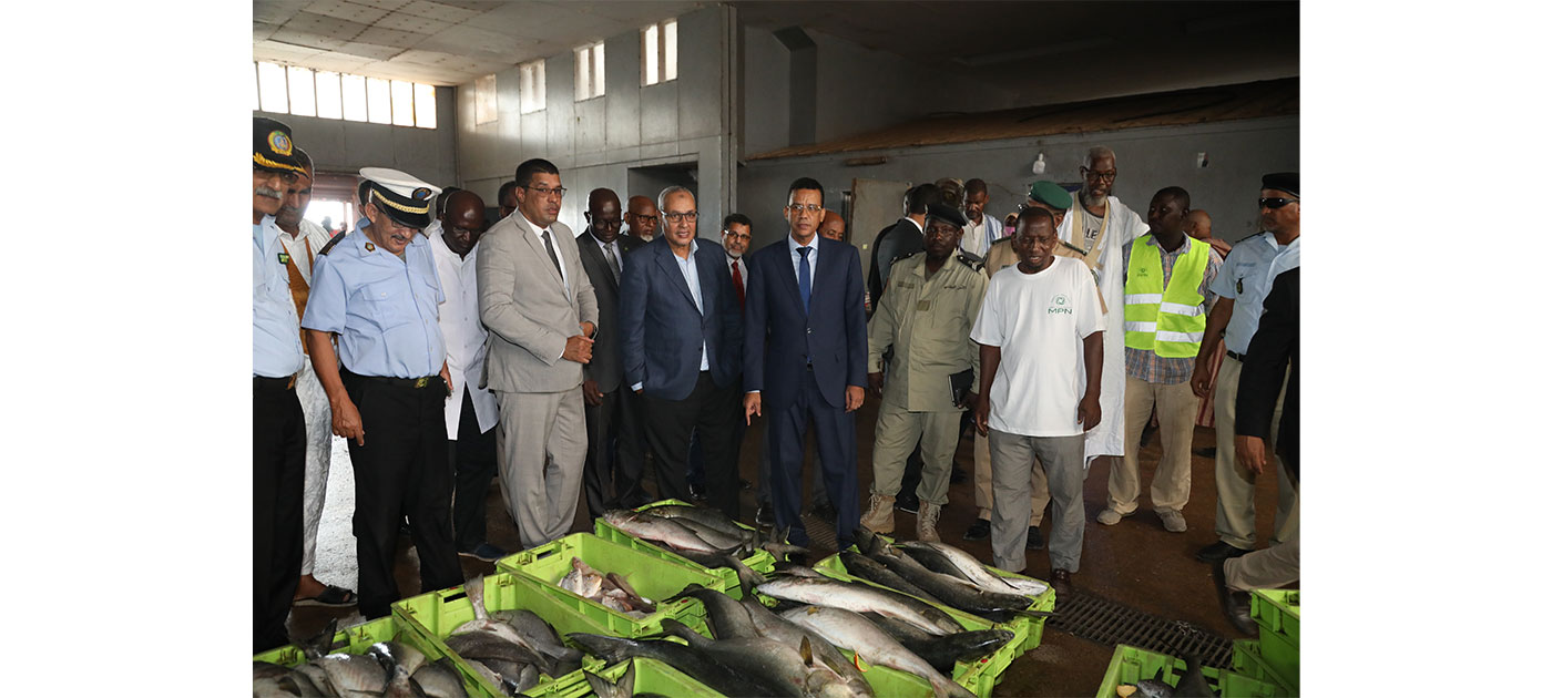 La première étape a été le Marché aux Poissons, où le Ministre a été accueilli par le Directeur Général de cet établissement, M. Cheiba Habib, entouré de ses principaux collaborateurs.