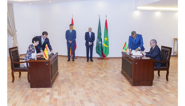 Son Excellence le Président de la République, Président de l’Union Africaine, Monsieur Mohamed Ould Cheikh El-Ghazzouani et  le chef du gouvernement espagnol, Son Excellence M. Pedro Sanchez ont supervisé, mardi après-midi au Palais présidentiel de Nouakchott, la signature d’un mémorandum d’entente sur la migration circulaire et une déclaration d’intention conjointe sur la lutte contre la criminalité organisée, au Palais présidentiel de Nouakchott.