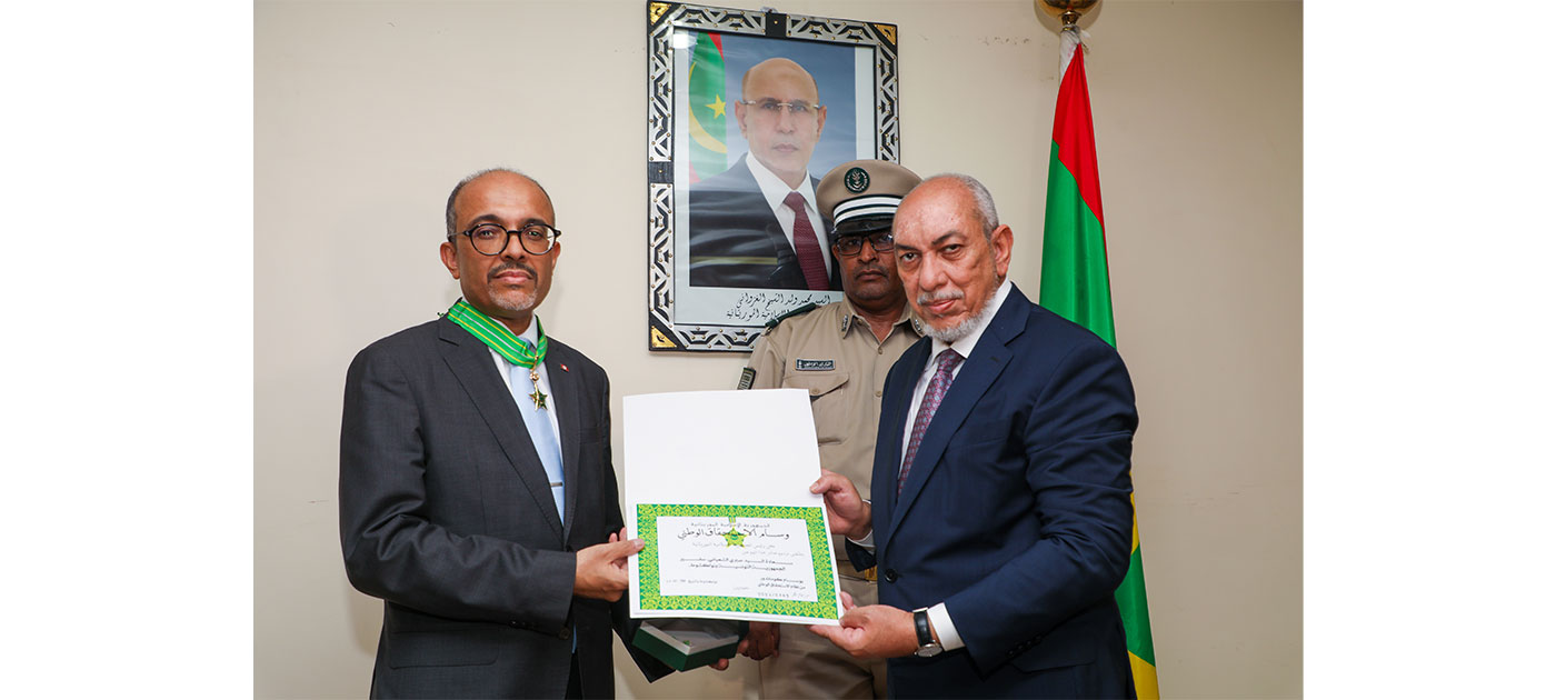 Le ministre de la Justice, M. Mohamed Mahmoud Ould Cheikh Abdoullah Ben Boya, par intérim ministre des Affaires Etrangères, de la Coopération Africaine et des Mauritaniens de l’Extérieur, a, au nom de Son Excellence le Président de la République Monsieur Mohamed Ould Cheikh El Ghazouani, décoré, lundi à Nouakchott, l’ambassadeur de la République tunisienne accrédité auprès de notre pays, SEM Sabri Chaabani, de la médaille de commandeur de l’ordre du mérite national à l’occasion de la fin de sa mission en Mauritanie.