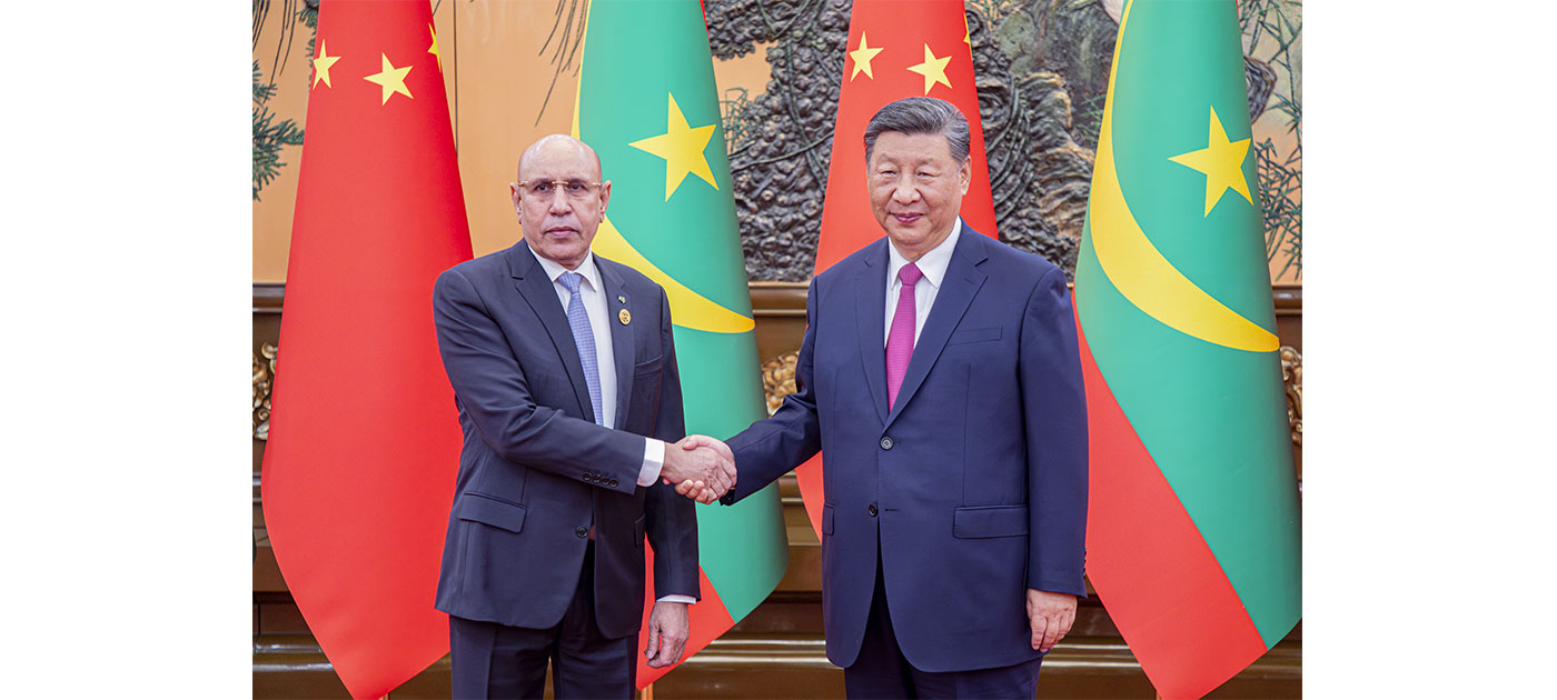 S.E. le Président de la République et Président de l’Union africaine, Mohamed Ould Cheikh El Ghazouani, a rencontré mardi à Beijing, la capitale chinoise, le Président chinois Xi Jinping. Les deux Chefs d’État ont discuté des relations entre notre pays et la République populaire de Chine, et plus globalement des relations sino-africaines.