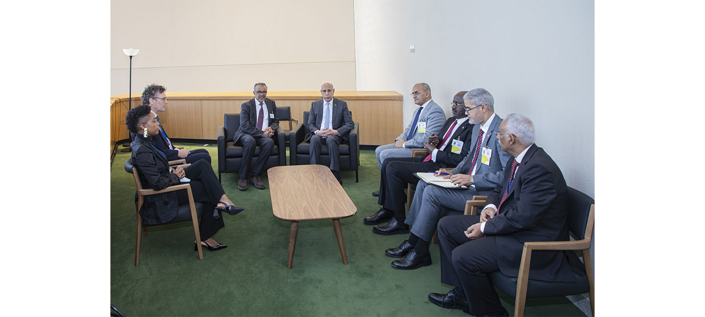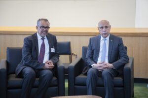 Le Président de la République, président de l’Union Africaine, Son Excellence Monsieur Mohamed Ould Cheikh El Ghazouani a rencontré, dimanche après midi à New York, le directeur général de l’Organisation Mondiale de la Santé (OMS), Dr Tedros Adhanom Ghebryesus.