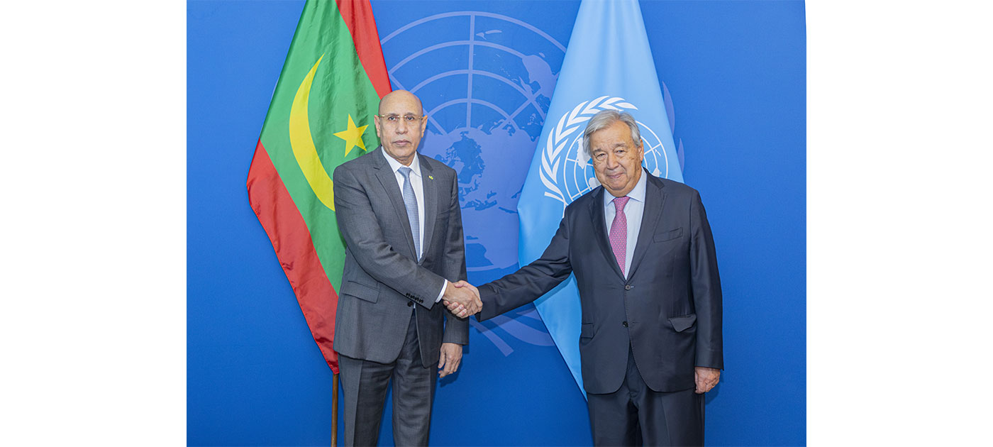 Le Président de la République, président de l’Union Africaine, Son Excellence Monsieur Mohamed Ould Cheikh El Ghazouani, a rencontré, dimanche à New York, le secrétaire général des Nations Unies, M. Antonio Guterres.