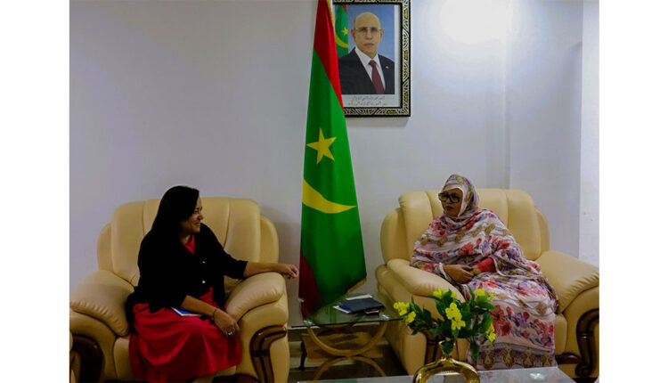 La Commissaire à la Sécurité alimentaire, Mme Fatimetou Mint Khatri, a reçu lundi à son bureau à Nouakchott, la directrice exécutive adjointe du Programme alimentaire mondial (PAM), la directrice exécutive adjointe du Programme alimentaire mondial (PAM), Valerie Guerneri, à la tête d’une délégation de haut niveau du PAM actuellement en visite en Mauritanie dans le cadre du programme de cette institution onusienne visant à renforcer la résilience des groupes affectés par le changement climatique.