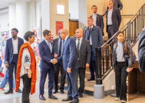 S.E. le Président de la République a été reçu à l’entrée de SciencesPo par M. Louis Vassy, directeur de l’Institut d’études politiques de SciencesPo, Mme Arancha Gonzalez, Doyenne de l’Ecole des Affaires Internationales de Paris, et Mme Nachouat Maghouar, directrice générale de la French-African Foundation de Sciences Po.