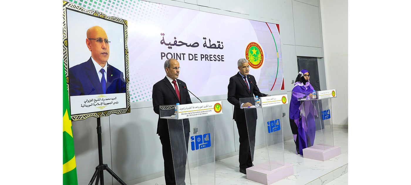 Des membres du gouvernement ont commenté, mercredi après-midi, les travaux du conseil des ministres tenu dans la matinée. Il s’agit du ministre de la Formation professionnelle, de l’Artisanat et des Métiers, porte-parole du gouvernement par intérim, M. Melainine Ould Eyih, du ministre de l’Economie et des Finances, M. Sid’Ahmed Ould Bouh, et du ministre de l’Environnement et du Développement durable, Mme Messaouda Baham Mohamed Laghdaf.