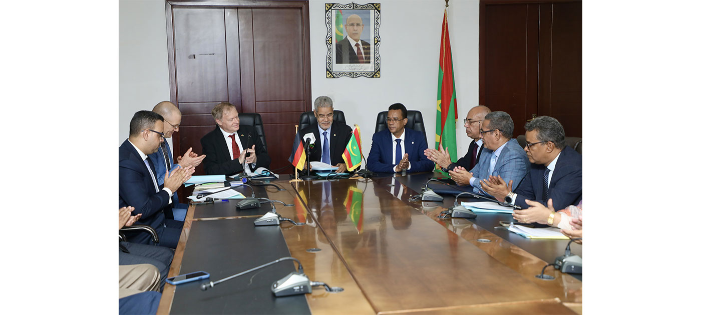 Le ministre de l’Économie et des Finances, M. Sid’Ahmed Ould Bouh, a signé, jeudi à Nouakchott, avec l’ambassadeur de la République Fédérale d’Allemagne, SEM. Florian Rendell, un accord de coopération financière pour le financement du projet d’appui à la mise en œuvre de la stratégie nationale du Secteur de la Pêche.