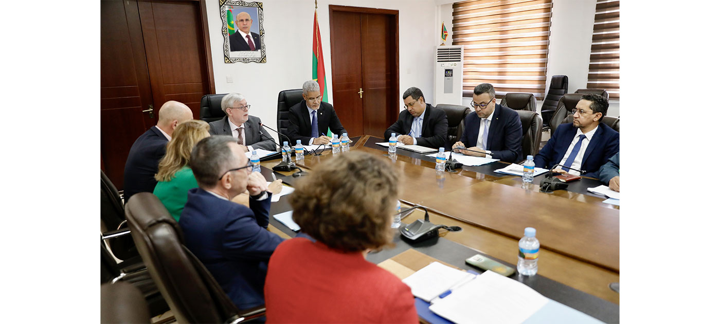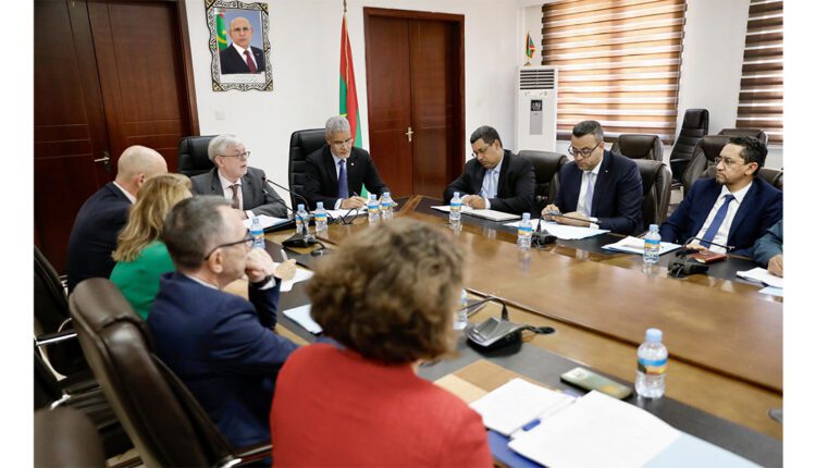 La rencontre fut l’occasion pour le ministre de souhaiter la bienvenue à l’ambassadeur et aux membres de sa délégation, soulignant que cette participation de haut niveau témoigne de l’importance de la nouvelle phase de partenariat pour les deux parties, qui entretiennent d’excellentes relations, se renforçant de jour en jour grâce à la volonté de Son Excellence le Président de la République, Monsieur Mohamed Ould Cheikh El Ghazouani, qui entretient des relations étroites avec les dirigeants de l’Union européenne et discute régulièrement avec eux des questions d’intérêt commun.