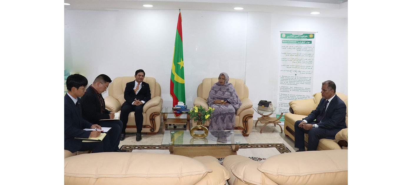 La Commissaire à la Sécurité Alimentaire, Mme Fatimetou Mint Khattry, a reçu, mercredi, S.E. M. Yoon Yunjin, Ambassadeur de la République de Corée accrédité auprès de notre pays.
