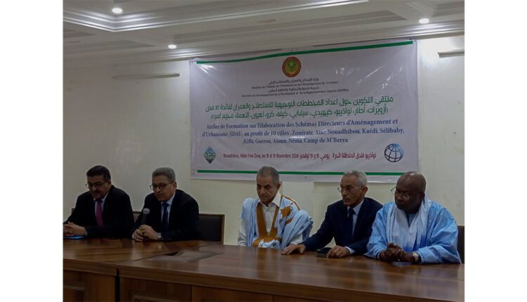 Le wali du Dakhlet-Nouadhibou, M. Mahi Ould Hamed, a présidé, mardi, à Nouadhibou la cérémonie de clôture d’un séminaire de formation sur l’élaboration des schémas directeurs d’aménagement et d’urbanisation de dix villes mauritaniennes financées par le projet d’appui à la décentralisation et au développement des villes moyennes productives (MOUDOUN), financé par la Banque mondiale : Néma, Aioun, camp de M’Berra, Kiffa, Guerou, Nouadhibou, Kaédi, Sélibaby, Atar et Zouerate.