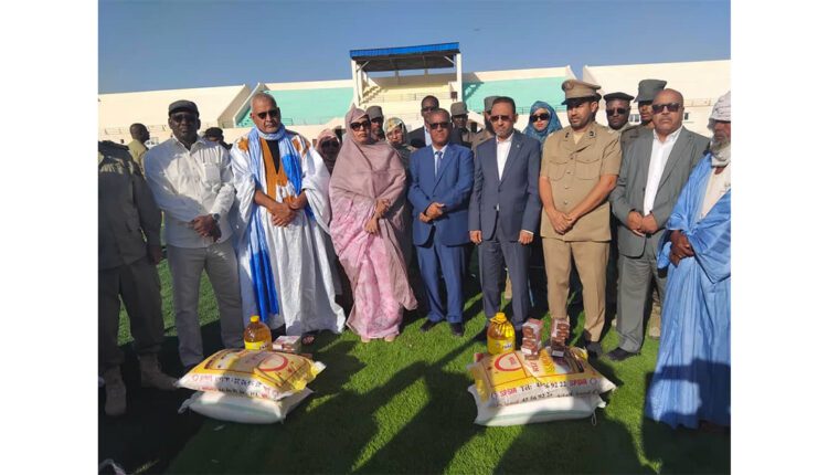 Le délégué général à la solidarité nationale et à la lutte contre l’exclusion (Taazour), M. Cheikh Ould Bodda, et la commissaire à la sécurité alimentaire, Mme Fatimetou Mint Mahfoudh Ould Khattri, ainsi que le wali du Trarza, M. Mohamed Ould Ahmed Mouloud, ont supervisé, mardi, la distribution de paniers alimentaires et de sommes d’argent à 300 familles touchées par les récentes inondations et hébergées depuis au stade du Kilomètre 7 à Rosso.