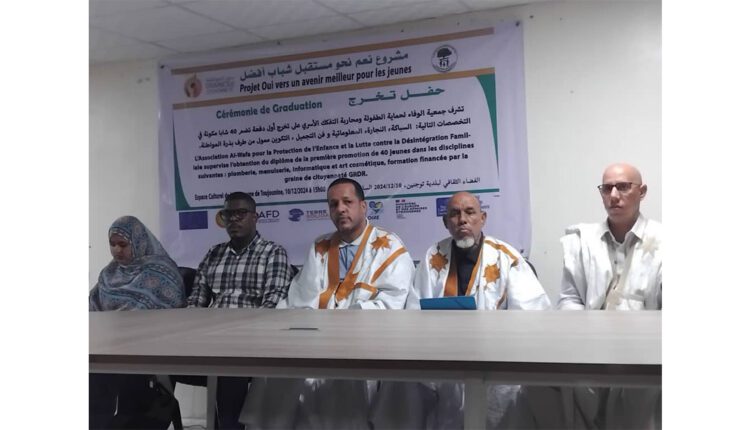 L’association Wafa pour la Protection de l’Enfance et la Lutte contre les dysfonctionnements familiaux a organisé, mardi à l’espace culturel de la commune de Toujounine (Nouakchott Nord), une cérémonie de remise de diplômes à 40 jeunes hommes et femmes formés dans différents métiers.