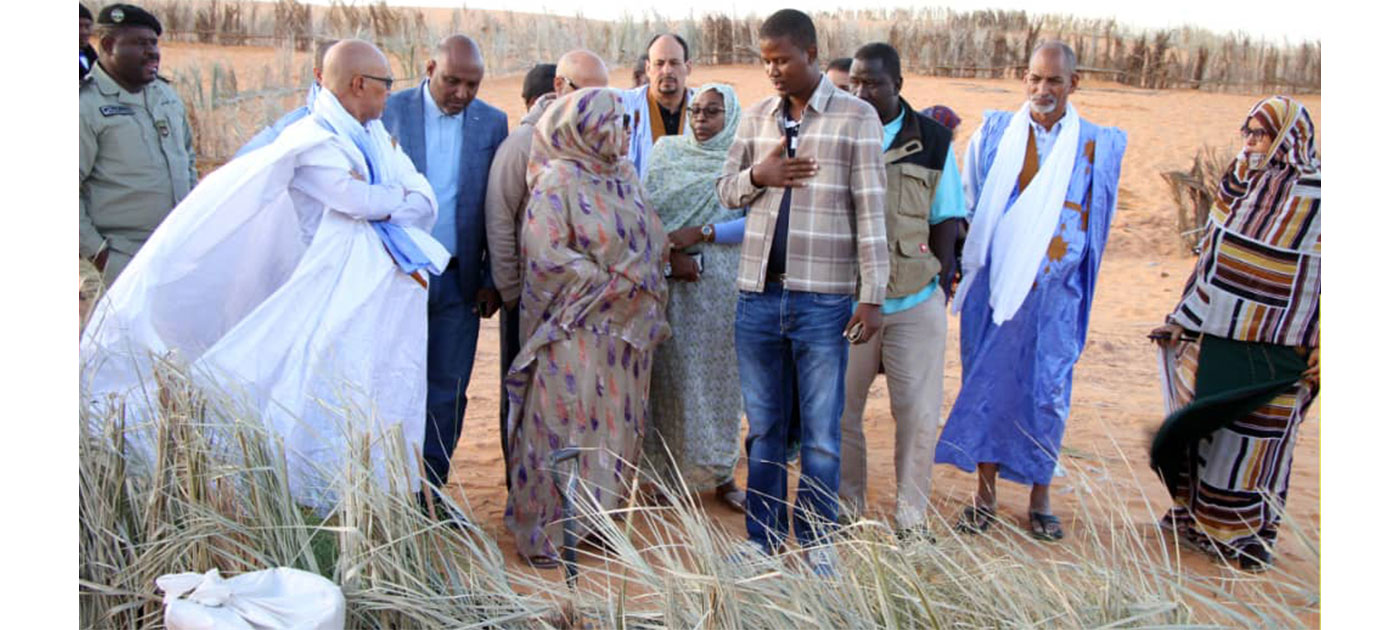 La ministre a visité des sites de stabilisation des dunes mouvantes à l’est de la ville de Chinguetti, mis en œuvre par la direction de la protection de la nature sur une superficie de cinq hectares par stabilisation mécanique et biologique en plantant des espèces locales d’arbres « Um Rakba, « Titark », « Teychett », et « Airoir ».