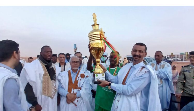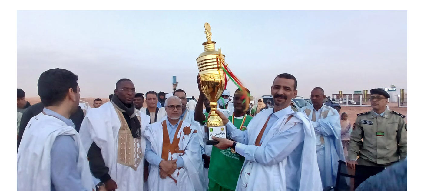 Le ministre de la Culture, des Arts, de la Communication et des Relations avec le Parlement, porte-parole du gouvernement, M. El Houssein Ould Medou, a remis, lundi soir, le trophée du tournoi de football du festival des cités dupatrimoine à l’équipe de Djéol, après avoir remporté la séance de tirs au but contre l’équipe de Oualata lors du match final de ce tournoi.