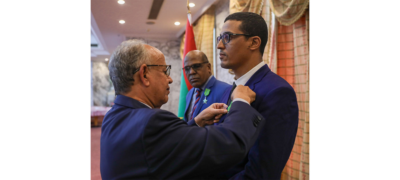 S.E. le Ministre Secrétaire Général de la Présidence de la République, M. Moulaye Ould Mohamed Lagdhaf, a décoré, mercredi soir, au Palais Présidentiel, au nom de S.E. le Président de la République, Mohamed Ould Cheikh El Ghazouani, du grade de Chevalier de l’Ordre National du Mérite, M. Cheikh Soueidi Habib, Secrétaire particulier du Ministre chargé du cabinet du Président de la République, et de l’Ordre National de la Reconnaissance, M. Mohamed El Hanchi Ahmed Abdallahi, Attaché à la Présidence de la République.