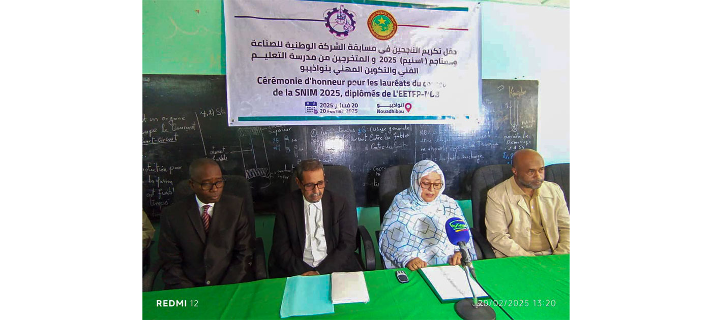 L’école de l’enseignement technique et de la formation professionnelle de Nouadhibou a organisé, jeudi, une cérémonie en l’honneur de ses élèves qui ont réussi au récent concours de recrutement de la société nationale industrielle et minière (Snim).