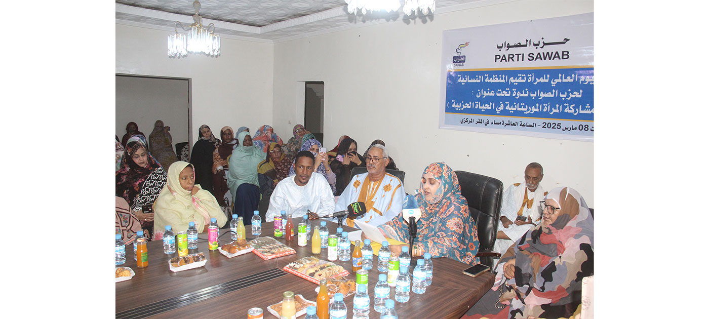 L’organisation des femmes du parti Sawab a organisé, samedi soir au siège du parti à Nouakchott, une rencontre intellectuelle sur la participation de la femme mauritanienne à la vie du parti, à l’occasion de la journée internationale de la femme qui coïncide avec le 8 mars de chaque année.