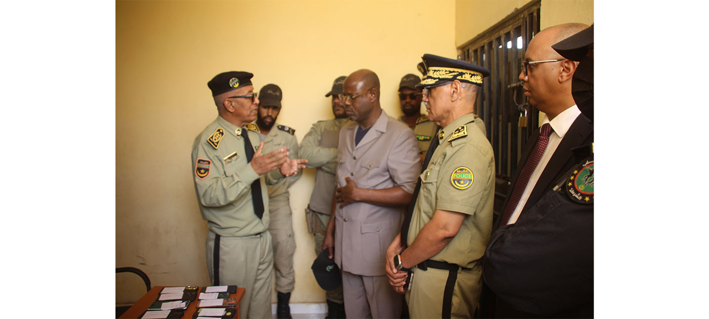 La délégation s’est ensuite dirigée vers le centre d’accueil temporaire des migrants clandestins à Dar Naim, accompagnée du directeur général de la Sûreté nationale, du directeur régional de la Sûreté de Nouakchott Nord et du commissaire supervisant le centre.