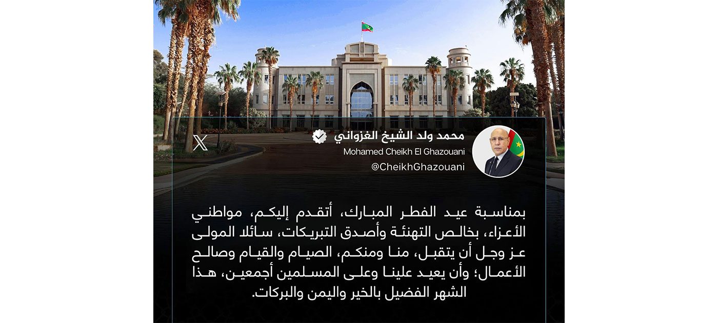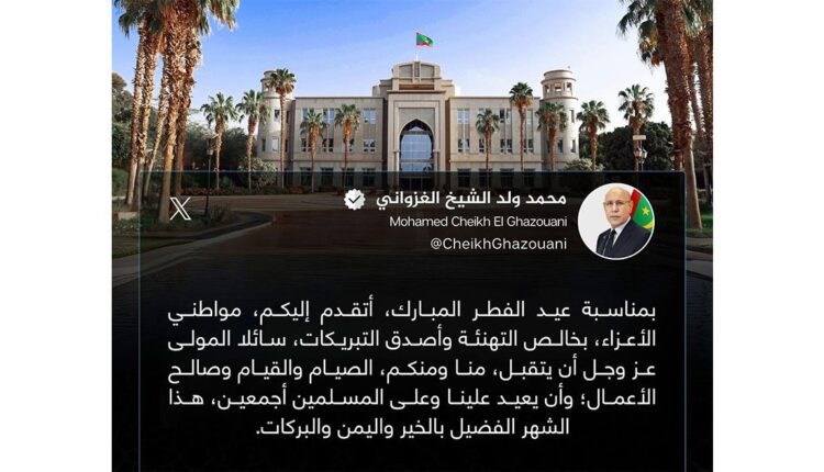 Son Excellence le Président de la République Monsieur Mohamed Ould Cheikh El Ghazouani a adressé samedi ses vœux et félicitations au peuple mauritanien à l’occasion de l’Aïd al-Fitr.