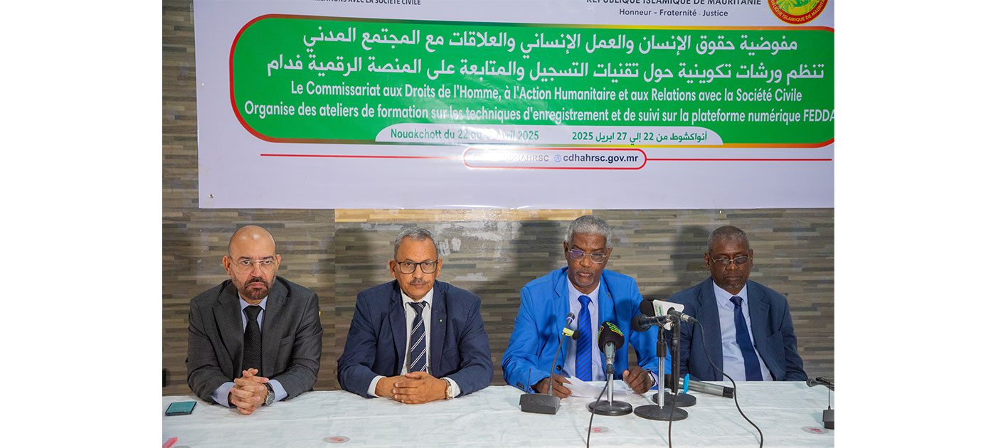 Le Commissariat aux Droits de l’Homme, à l’Action humanitaire et aux Relations avec la Société civile a lancé, mardi à Nouakchott, une série d’ateliers de formation sur les mécanismes d’enregistrement et de suivi sur la plateforme numérique «FEDDAM», ainsi que sur la préparation et la soumission des rapports au profit de 75 organisations de la société civile.