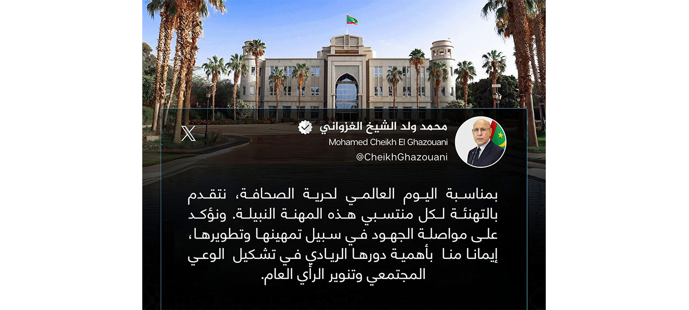 S.E. le Président de la République, M. Mohamed Ould Cheikh El Ghazouani, a félicité la famille de la presse à l’occasion de la journée mondiale de la liberté de la presse.