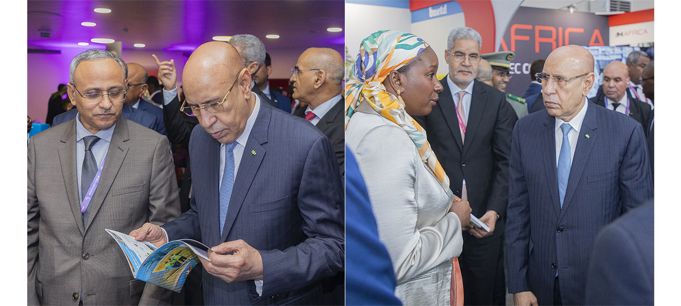 Le Président de la République, Monsieur Mohamed Ould Cheikh El Ghazouani, a visité, lundi à Abidjan, les deux pavillons de la Mauritanie installés dans le cadre des activités prévues pour la douzième session du Forum des chefs d’entreprise africains à Abidjan, en République de Côte d’Ivoire.