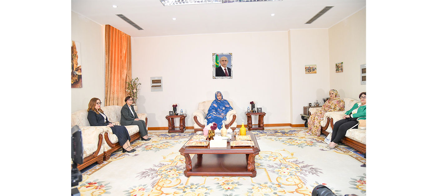 La Première Dame, Dr Mariem Mohamed Fadel Ould Dah, s’est entretenue lundi au Palais des Congrès de Nouakchott avec une délégation de l’Organisation des femmes arabes conduite par la Directrice générale, Fadia Kiwan, en marge du Forum de haut niveau pour l’autonomisation des femmes maghrébines.