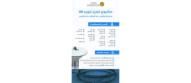 Cet important projet comprend le forage et l’équipement de 90 nouveaux puits pour augmenter la production, la réhabilitation et la mise en service de certaines stations de pompage, de raffinage et de dessalement, l’entretien et l’amélioration des installations de production du champ du Dhar afin d’augmenter la production, en plus de l’acquisition et installation de 283 kilomètres de canalisations de distribution.