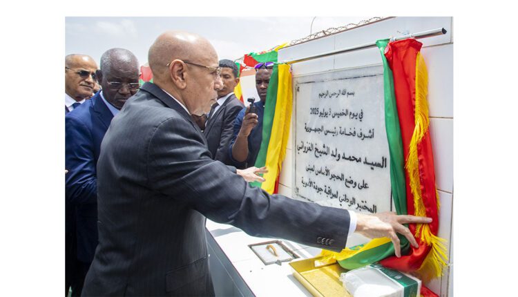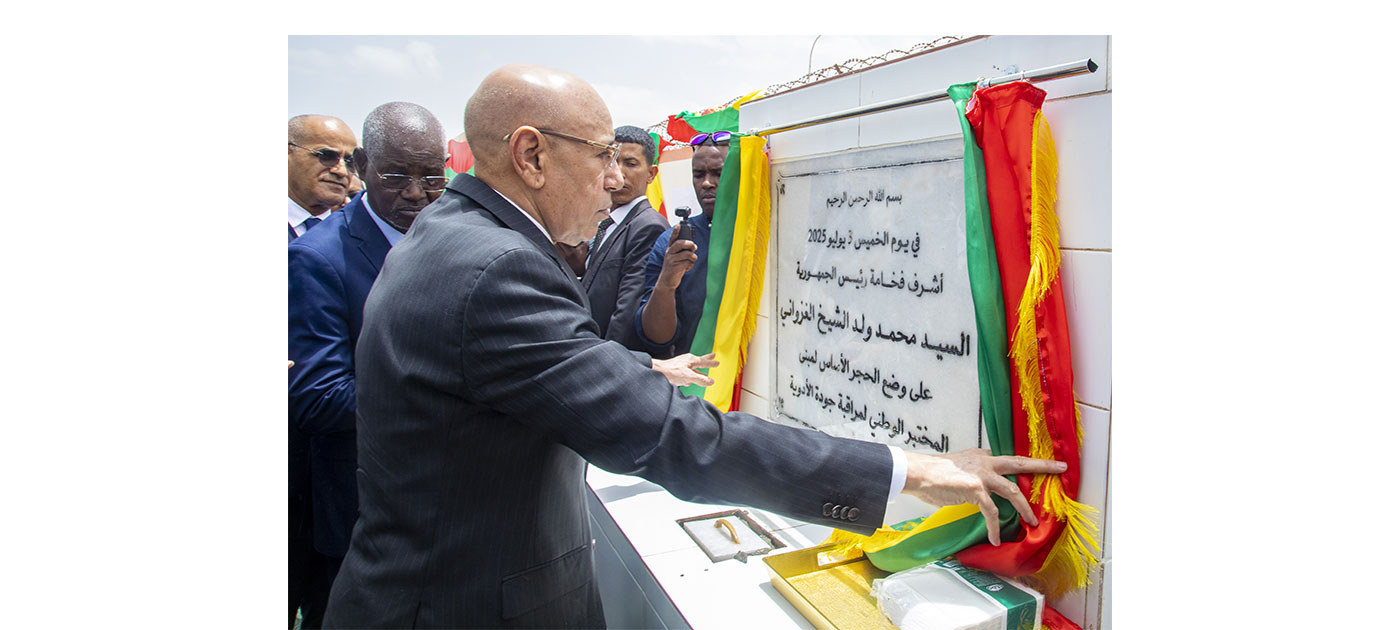 S.E. le Président de la République, M. Mohamed Ould Cheikh Ghazouani, a procédé, jeudi matin, dans la moughataa de Sebkha, wilaya de Nouakchott Ouest, à la pose de la première pierre de l’immeuble du laboratoire national de contrôle de la qualité des médicaments.