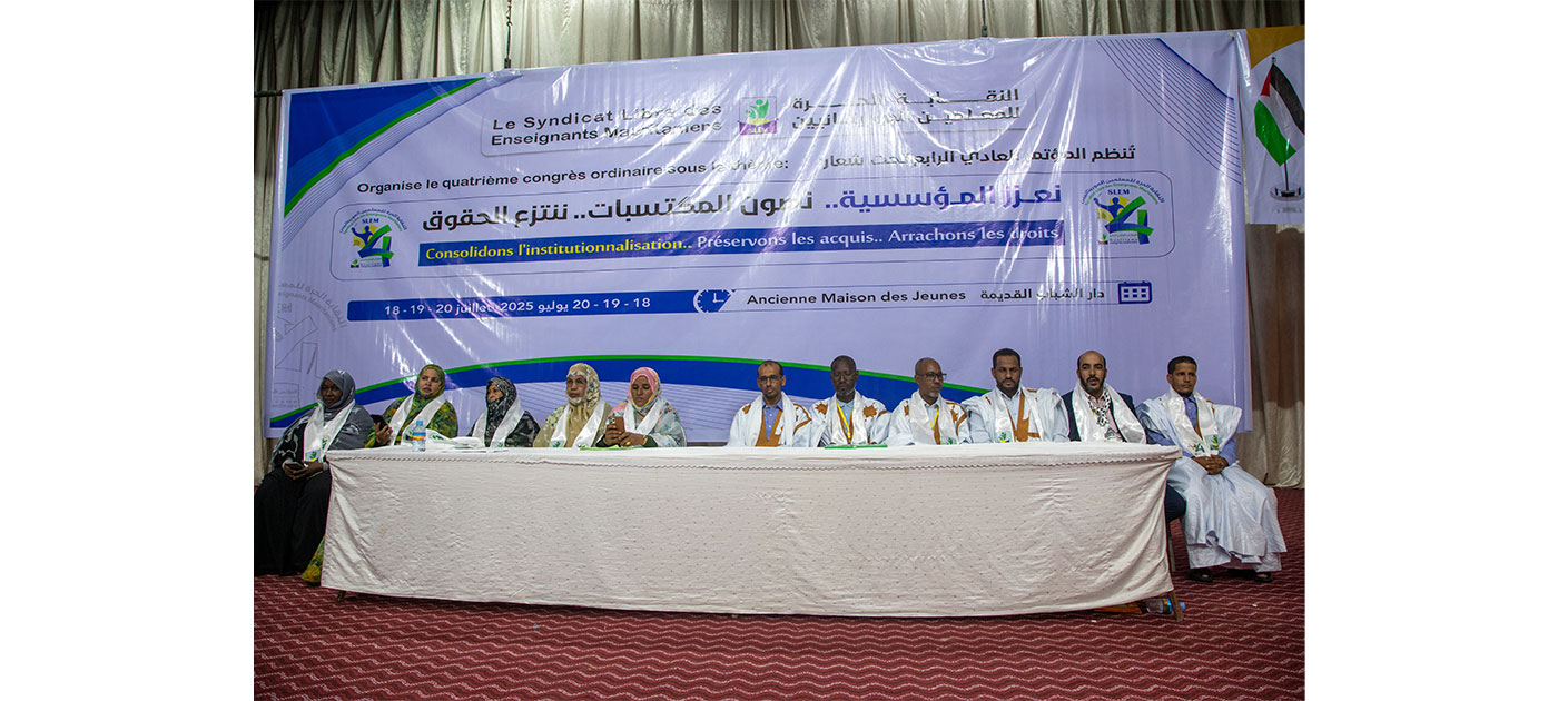 Le Syndicat libre des enseignants de Mauritanie (SLE) a tenu sa quatrième congrès ordinaire vendredi soir à Nouakchott, sous le thème : « Nous renforçons l’institutionnalisme… Nous préservons les acquis… Nous saisissons les droits ».