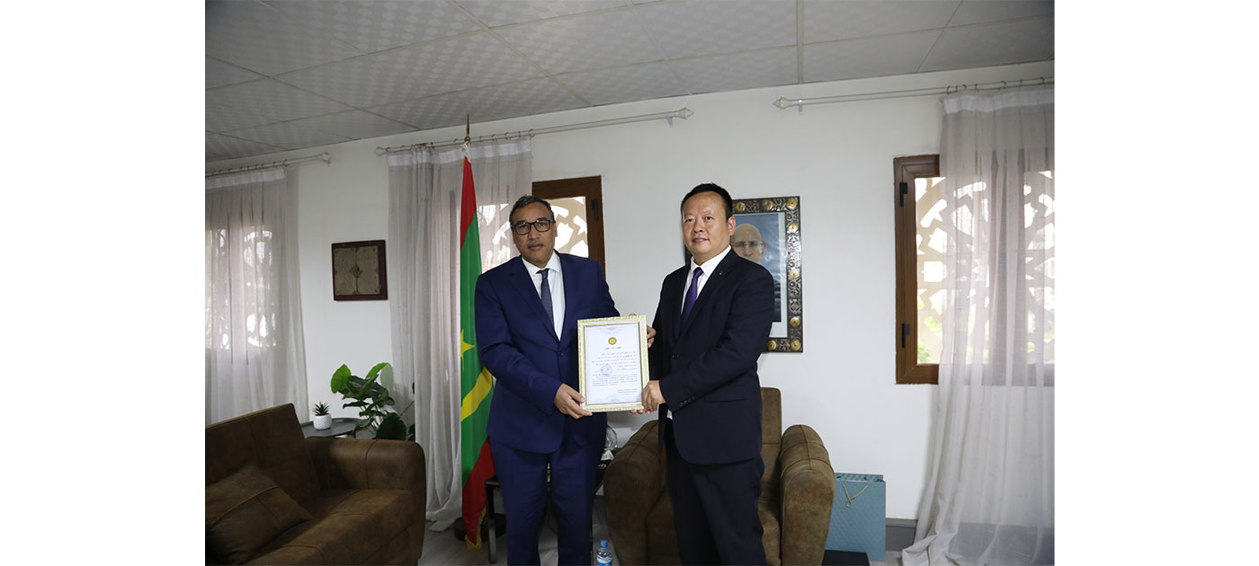 Le ministre a remis au directeur de l’Institut un certificat de remerciement et d’appréciation en reconnaissance de ses efforts pour promouvoir l’enseignement de la langue chinoise en Mauritanie, dans le cadre de son mandat de directeur de cet institut, hébergé par la Faculté des lettres et des sciences humaines de l’Université de Nouakchott.