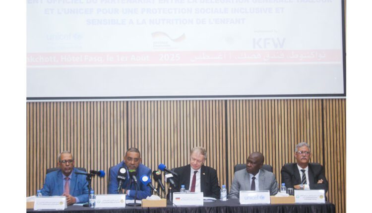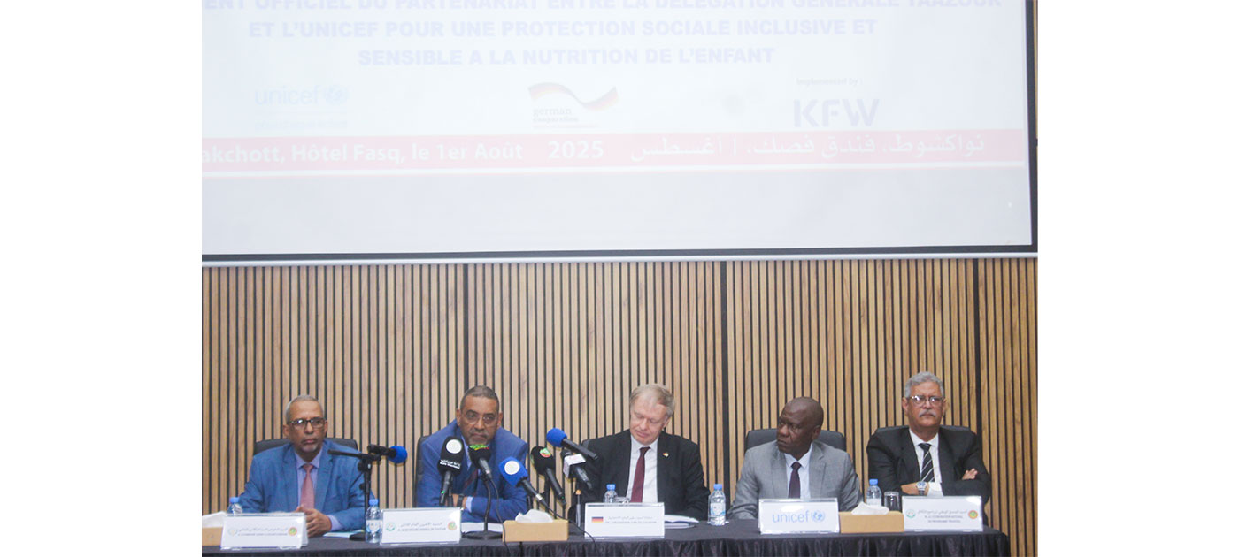 La Délégation Générale à la Solidarité Nationale et à la Lutte contre l’Exclusion “Taazour” et le Fonds des Nations Unies pour l’Enfance “UNICEF” ont annoncé, aujourd’hui vendredi, à Nouakchott, le lancement officiel de leur partenariat sous le slogan : “Pour une protection sociale inclusive axée sur la nutrition des enfants”.