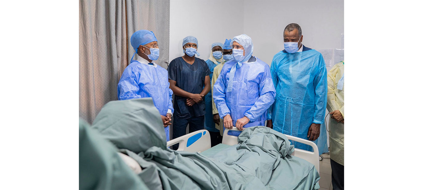 Au cours de cette visite, Son Excellence le Président de la République a pris connaissance du déroulement de la troisième mission d’opérations de transplantation rénale réalisées au CNC, qui a été marquée par une prouesse médicale sans précédent, à savoir deux opérations de transplantations rénales réussies, dont une pour un enfant de sept ans, la première du genre en Afrique subsaharienne.