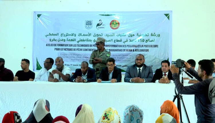 Le wali adjoint du Hodh Charghi, M. Abderrahmane Ahmed Daddah, a supervisé mardi le lancement d’un atelier de formation des acteurs de la pêche continentale, de la pisciculture et de la transformation du poisson, avec la participation de 150 bénéficiaires issus des moughataas de Néma et d’Adel Bekrou.