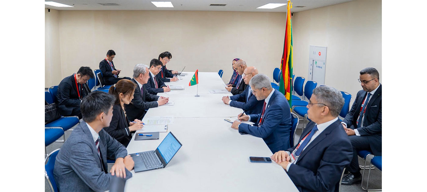 Son Excellence le Président de la République, M. Mohamed Ould Cheikh El Ghazouani, a tenu mercredi une réunion avec le président de l’Agence japonaise de coopération internationale, M. Tanaka Akihiko, en marge de la 9e édition du Sommet international de Tokyo sur le développement de l’Afrique (TICAD 9) qui se tient dans la ville japonaise de Yokohama. Outre le président de l’Agence, plusieurs hauts responsables, dont des vice-présidents et des directeurs, ont assisté à la réunion.