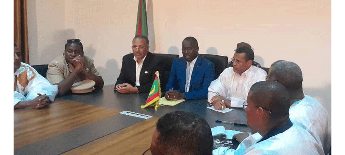 Dans le cadre des efforts visant à promouvoir le développement local, à explorer les opportunités d’investissement dans la wilaya et à soutenir les entreprises, la salle de réunion des bâtiments de la wilaya du Hodh El Gharbi, dans la ville d’Aioun, a abrité ce jeudi une réunion élargie comprenant les services techniques, les responsables des associations agricoles, pastorales et commerciales, ainsi que des hommes d’affaires. La réunion était présidée par le wali de du Hodh El Gharbi, M. Ahmed Mamadou Kelly, en compagnie du président de l’Union nationale des employeurs mauritaniens, M. Zeine El Abidine Ould Cheikh Ahmed.