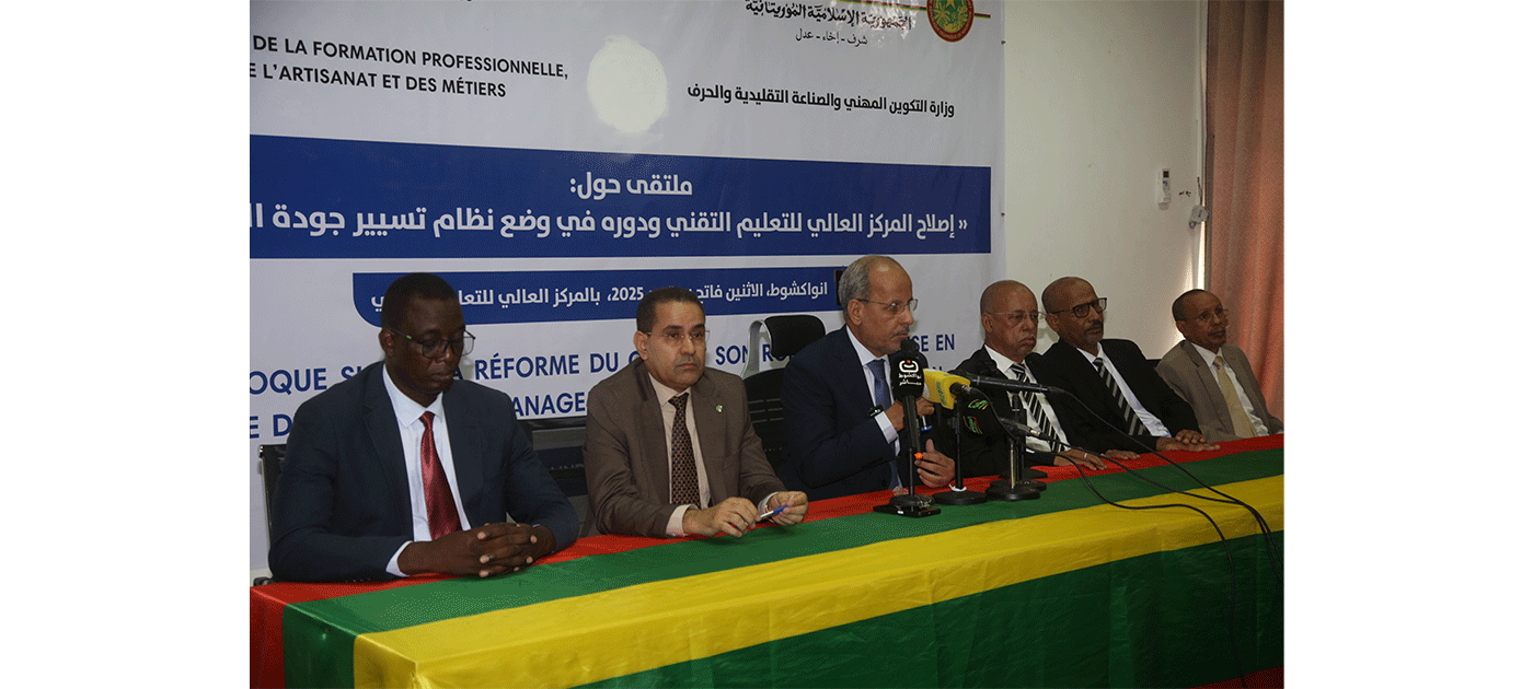Le ministère de la Formation professionnelle, de l’Artisanat et des Métiers a organisé, lundi à Nouakchott, un forum sur la réforme du Centre supérieur d’Enseignement technique et son rôle dans la mise en place d’un système de gestion de la qualité de la formation.