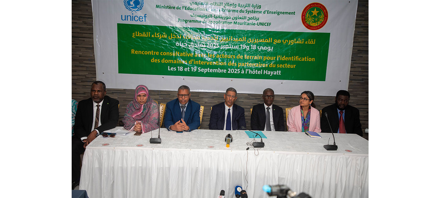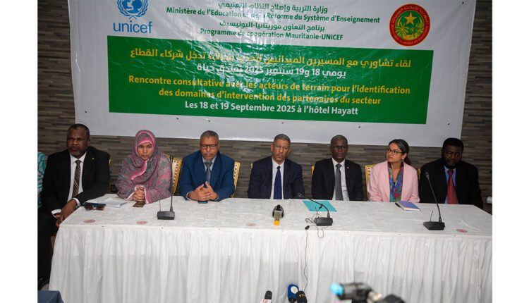 Le ministère de l’Éducation et de la Réforme du Système éducatif a tenu ce jeudi à Nouakchott une réunion de concertation avec les responsables de terrain du secteur de l’éducation et les différents acteurs et partenaires, afin de définir les priorités des plans d’action éducatifs au niveau national et les axes d’intervention des partenaires pour l’année scolaire 2025-2026.