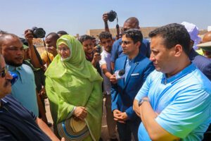 Le Premier ministre a débuté sa tournée à Nouakchott-Ouest par une visite du chantier d’élargissement de la route de l’aéroport, qui s’étend sur 17 km dans les deux sens. Il a également inspecté le tronçon routier reliant le Carrefour “El Berrad” et l’hôtel Sabah, dans le cadre du projet de contournement de Nouakchott et le projet de plantation d’arbres le long de la route.