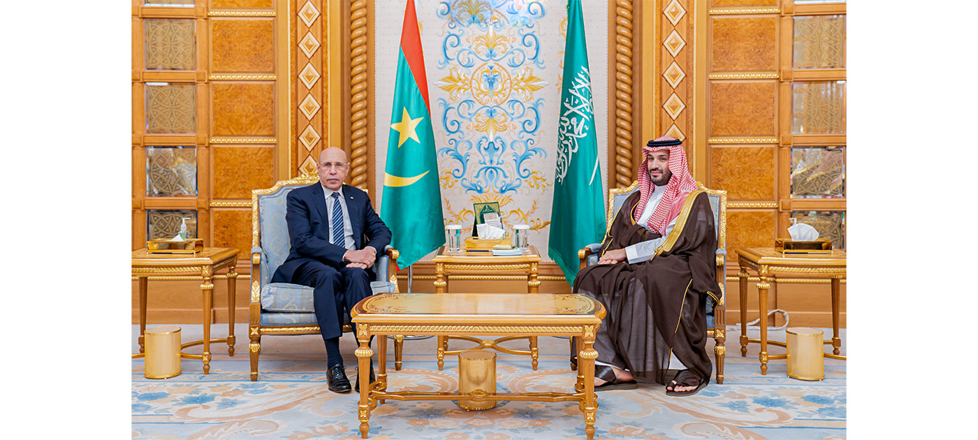 Son Excellence le Président de la République, Monsieur Mohamed Ould Cheikh El Ghazouani, a rencontré, lundi à Riyad, Son Altesse Royale le Prince, Mohamed ben Salmane ben Abdelaziz Al Saoud, Prince héritier du Royaume d’Arabie Saoudite, Président du Conseil des ministres.