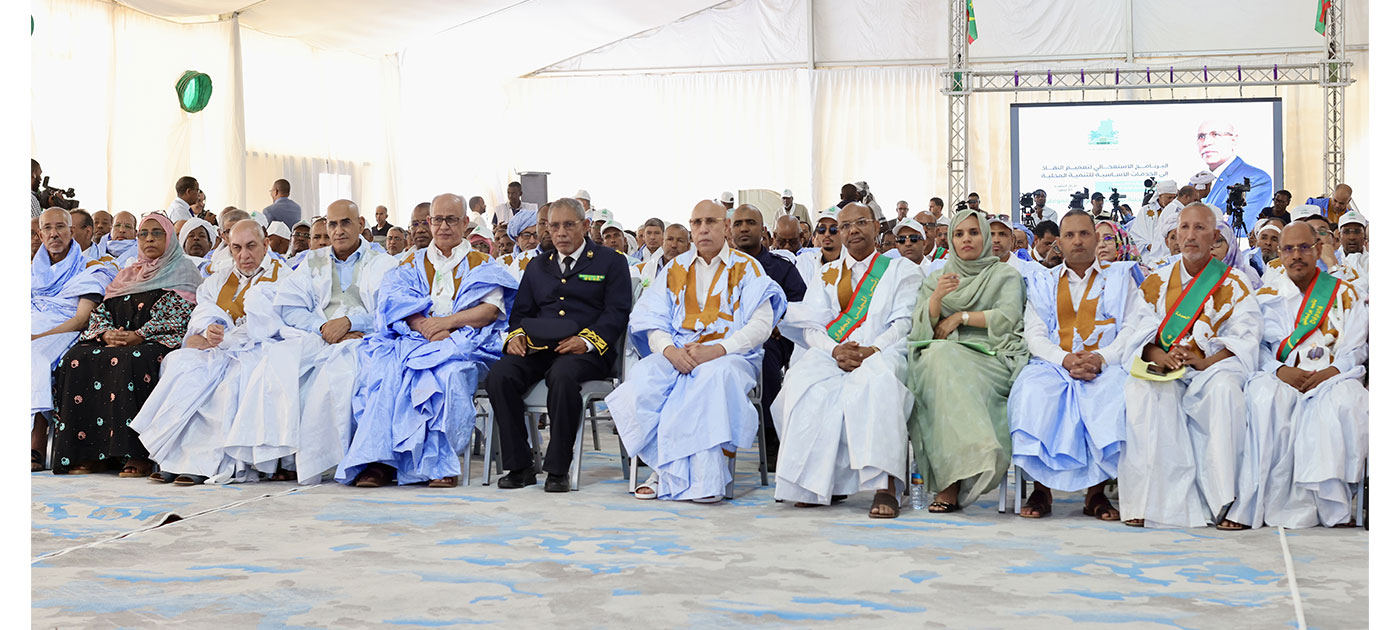 La cérémonie s’est déroulée en présence du ministre secrétaire général de la Présidence de la République, du ministre chargé du Cabinet du Président de la République, des ministres Conseillers à la Présidence de la République, de plusieurs membres du gouvernement, du wali du Hodh Chargui, du commandant de la Cinquième Région militaire, du hakem de la moughataa de Néma, du maire de cette ville, de ses députés, ainsi que des élus, cadres et notables de la Wilaya.