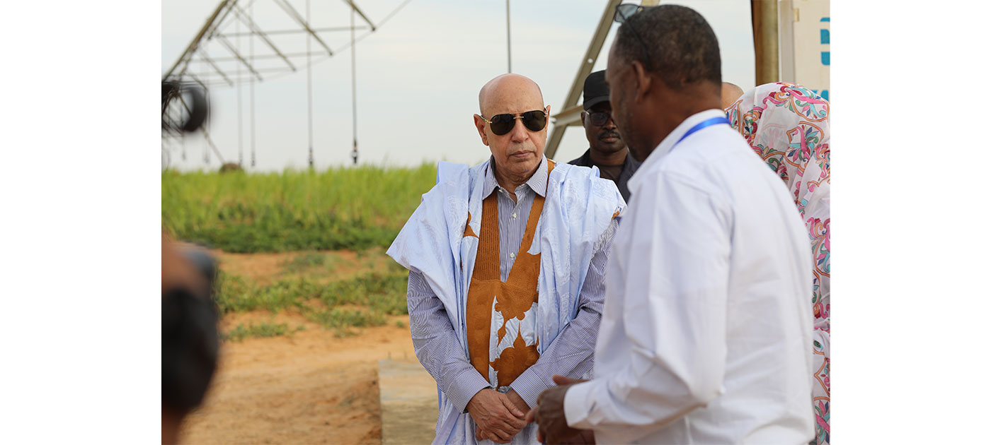 Le Président de la République, Son Excellence Monsieur Mohamed Ould Cheikh El Ghazouani, a visité, dimanche après-midi, la ferme intégrée des fourrages verts dans la localité de de N’Beikit Lahouach relevant de la moughataa de Dhar où il s’est informé de la situation du périmètre et a reçu des explications sur la surface du périmètre, la nature des fourrages qui s’y trouvent , la productivité, et les techniques utilisées pour emmagasiner les fourrages.