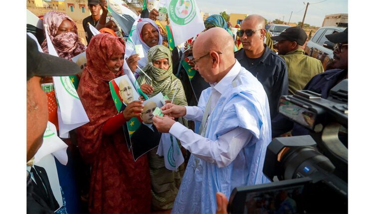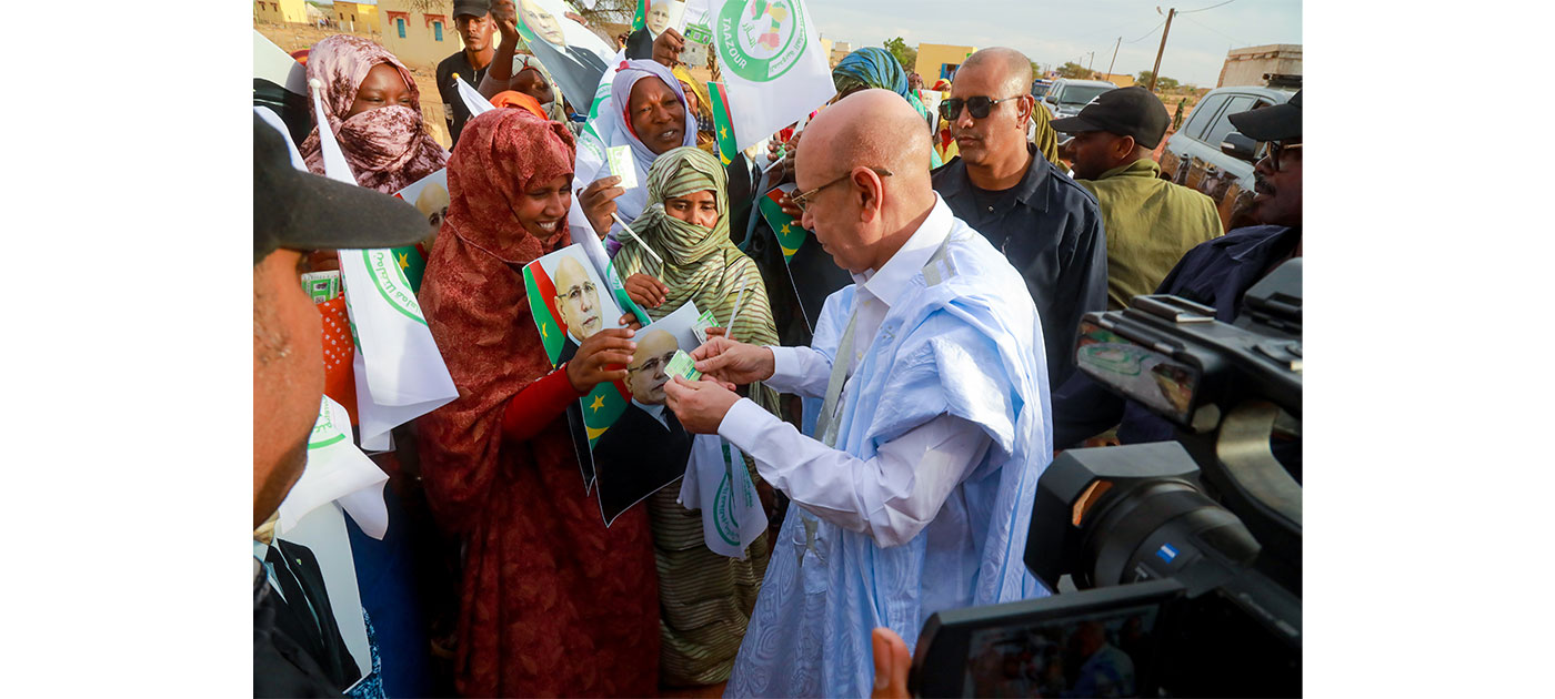 Le Président de la République s’arrête pour saluer un groupe de la “communauté Taazour” en route vers l’aéroport de Timbédra