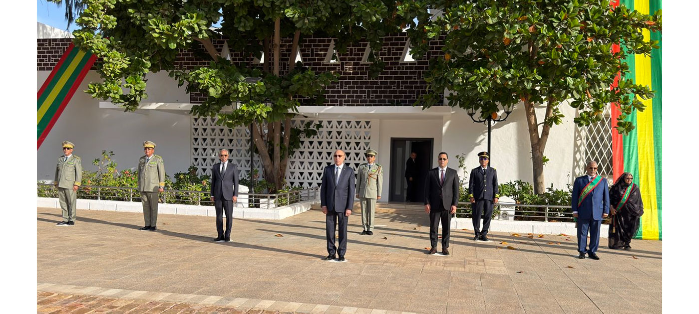 Son Excellence le Président de la République, Monsieur Mohamed Ould Cheikh El Ghazouani, a présidé, ce matin, vendredi, au Palais présidentiel de Nouakchott, la cérémonie de levée du drapeau national, en commémoration du soixante-cinquième anniversaire de la Fête de l’Indépendance nationale.